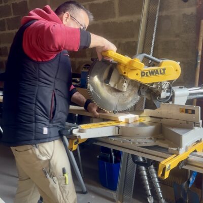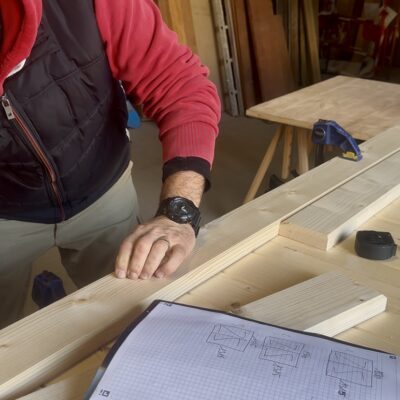 La découpe des volets est réalisée dans nos ateliers à l’aide d’outils adaptés. Les coupes longues et droites sont effectuées à la scie circulaire, tandis que les ajustements plus précis sont réalisés à la scie égoïne. Chaque découpe suit des repères rigoureux afin d’assurer un parfait équilibre des éléments et une qualité de finition irréprochable.