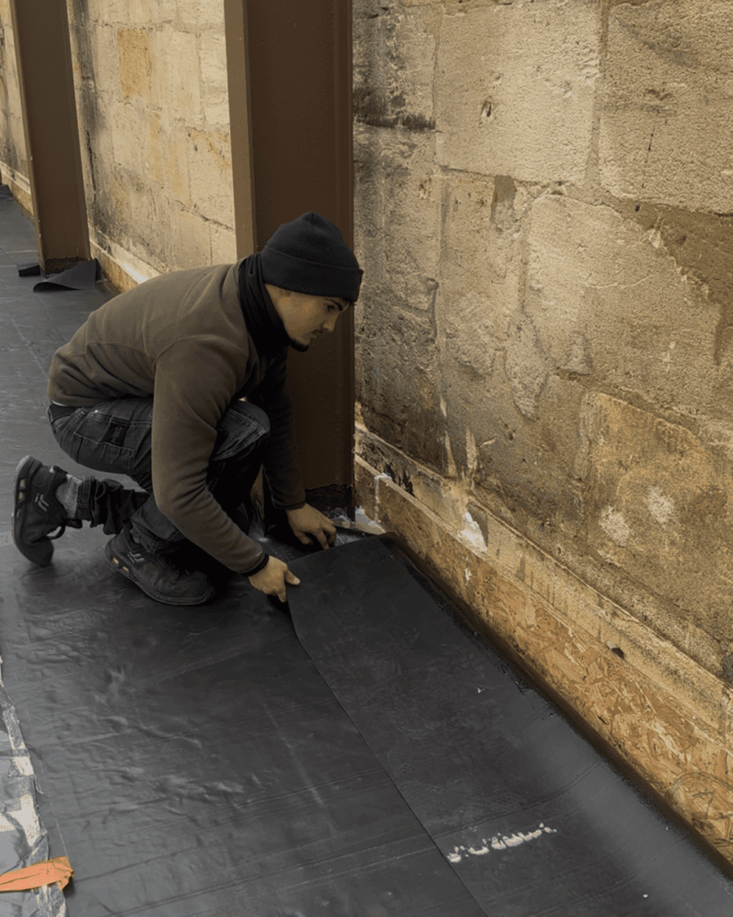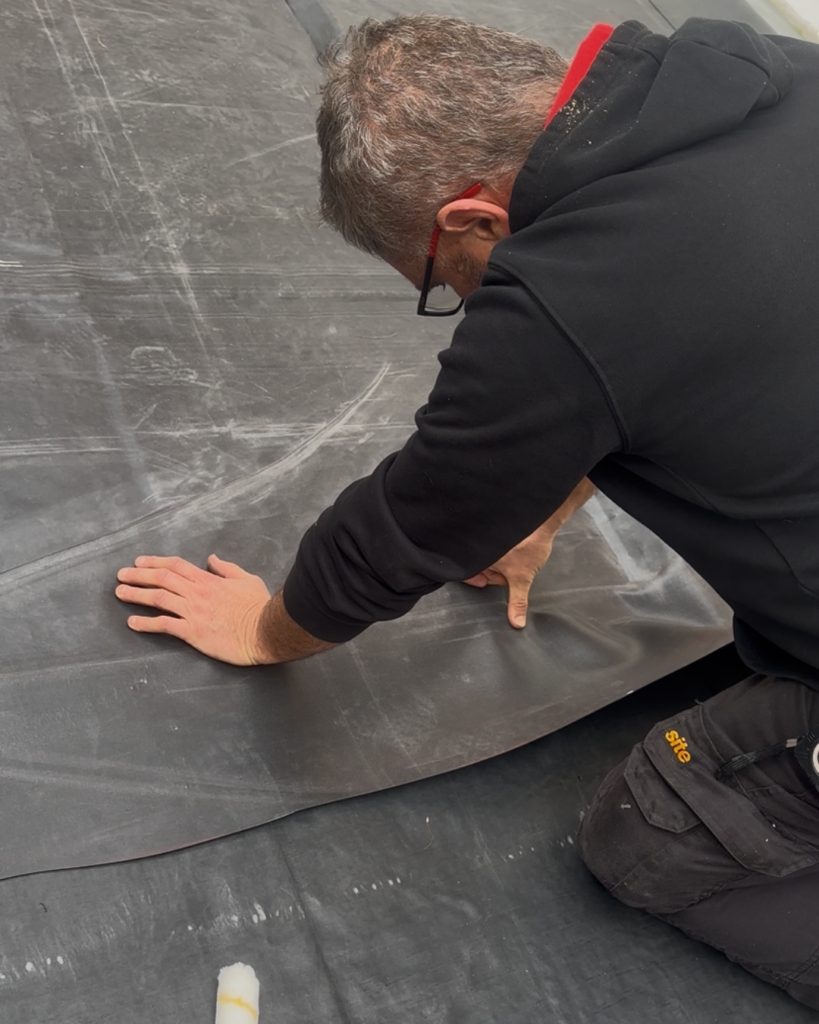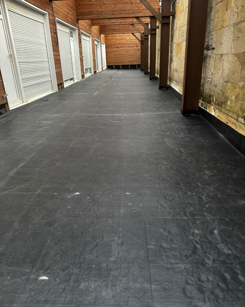 Une étape essentielle de ce projet : l’étanchéité de la terrasse en bois :