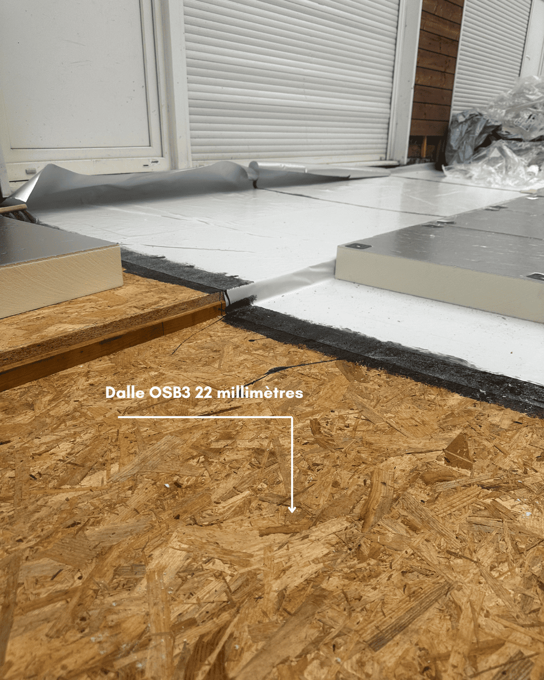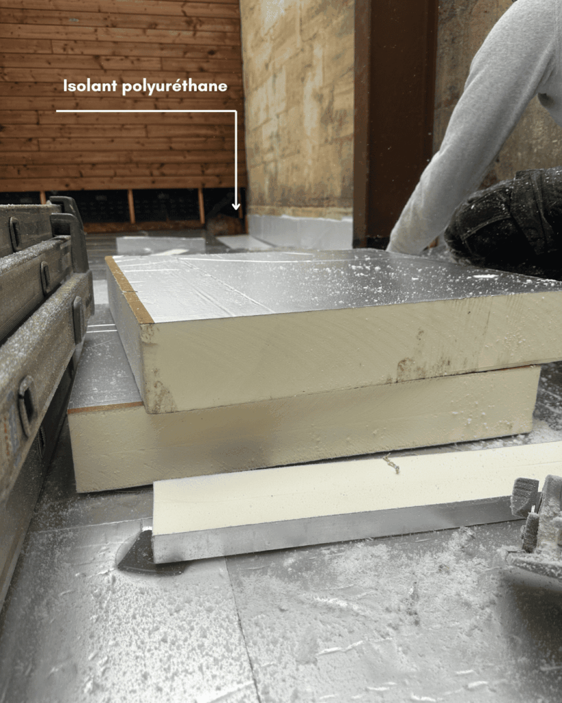 La nouvelle terrasse repose sur une structure robuste avec dalle OSB 3 de 22 mm, garantissant solidité, stabilité et durabilité. La mise en œuvre de l’isolant en polyuréthane assure un excellent confort thermique et une performance parfaitement adaptée à une terrasse en bois accessible.